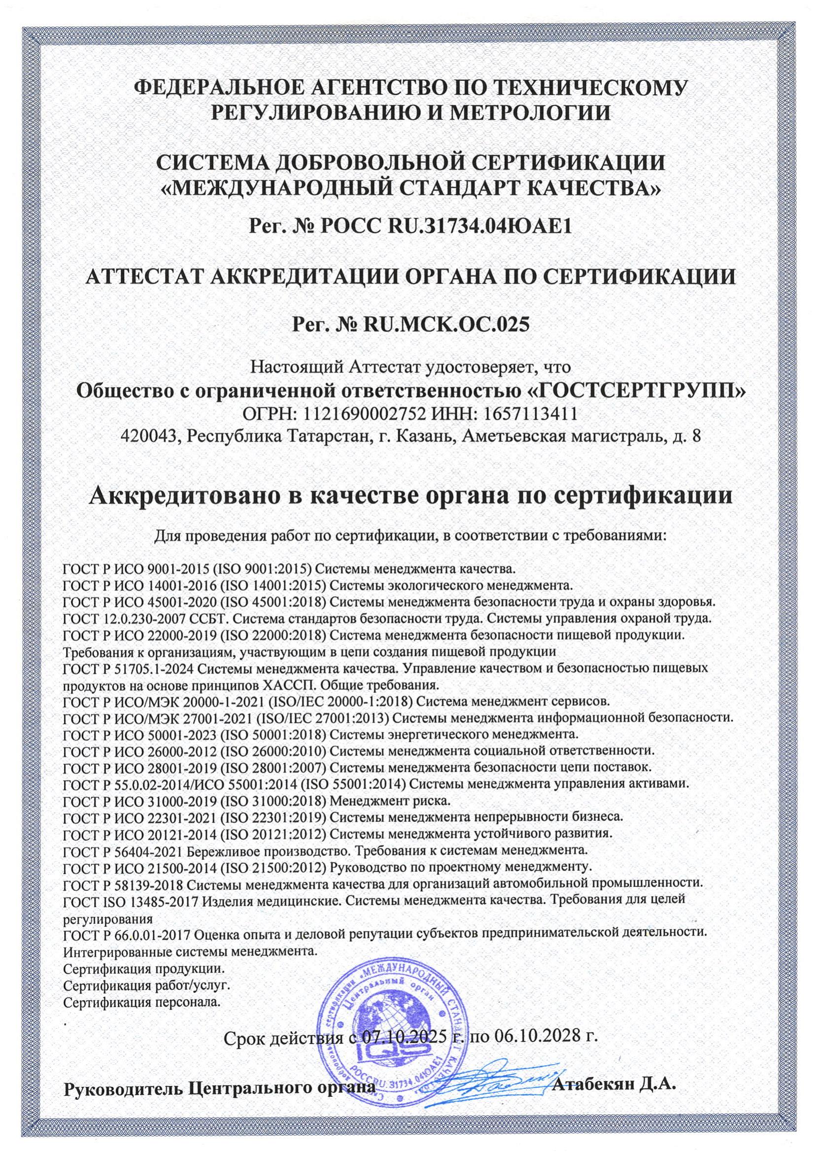 Для получения аттестата будущий орган по сертификации должен обладать: